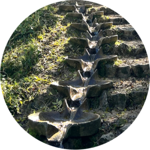 Het is een prachtige ervaring om samen met je mede-pelgrims op de steen te zitten die de eerste brug over de Rijn vormt en vanaf hier de Bron te voeden met Liefde, Dankbaarheid en Plezier. Hier gaat de Bron over in de rivier de Rijn (die je hier in één stap kunt oversteken). Dit kan iets in je bewegen dat je daarvandaan meeneemt en waar je later op ieder moment weer contact mee kunt maken.